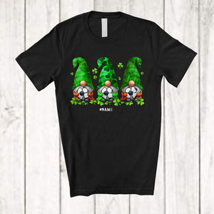 Personalized Custom Name Three Gnomes Soccer Player; Lovely St. Patrick's Day Sport Shamrock T-Shirt