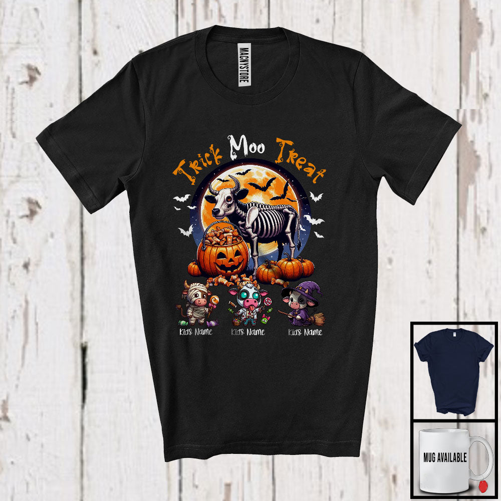 Personalized Custom Name Trick Moo Treat, Scary Halloween Cow Skeleton, Witch Zombie T-Shirt