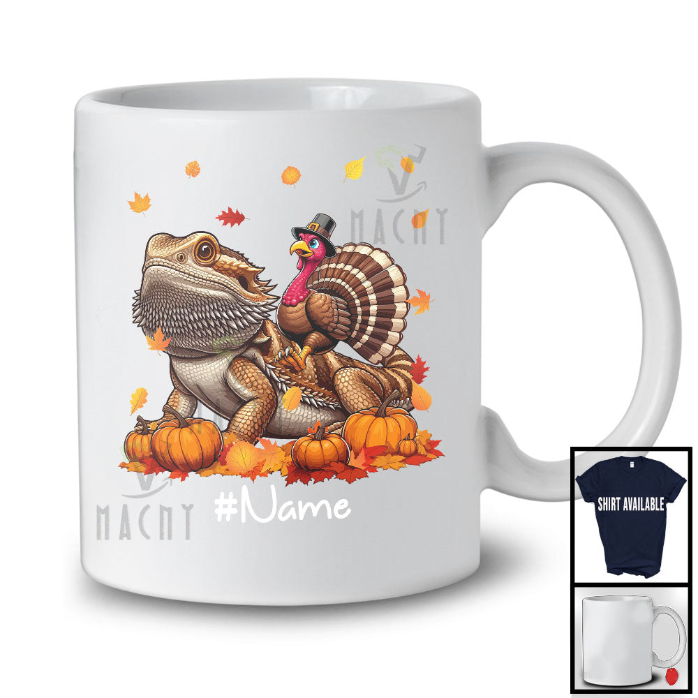 Personalized Custom Name Turkey Riding Bearded Dragon, Lovely Thanksgiving Pumpkins, Bearded Dragon Lover T-Shirt