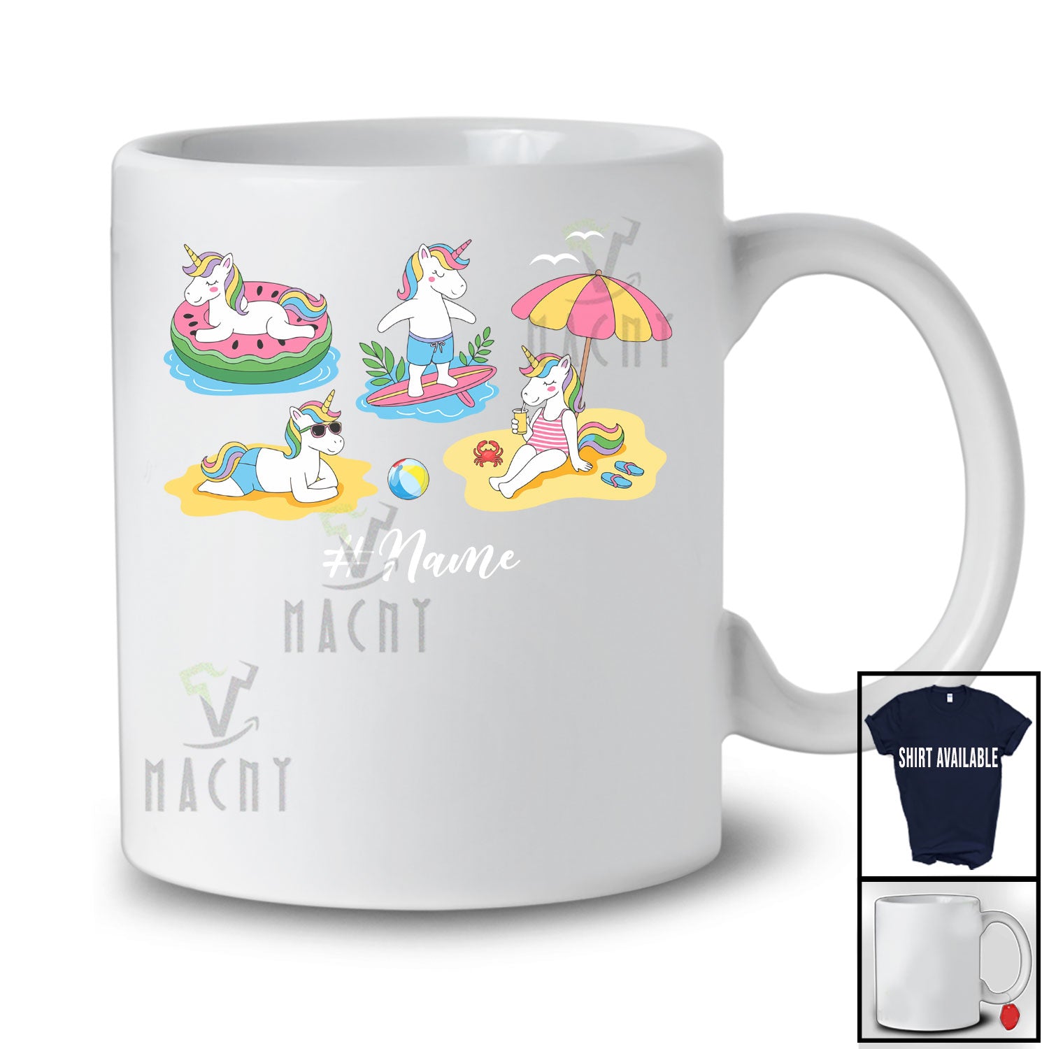 new MacnyStore - Personalized Custom Name Unicorn Beach Collection; Lovely Summer Vacation Chill Swimming T-Shirt – Macnystore