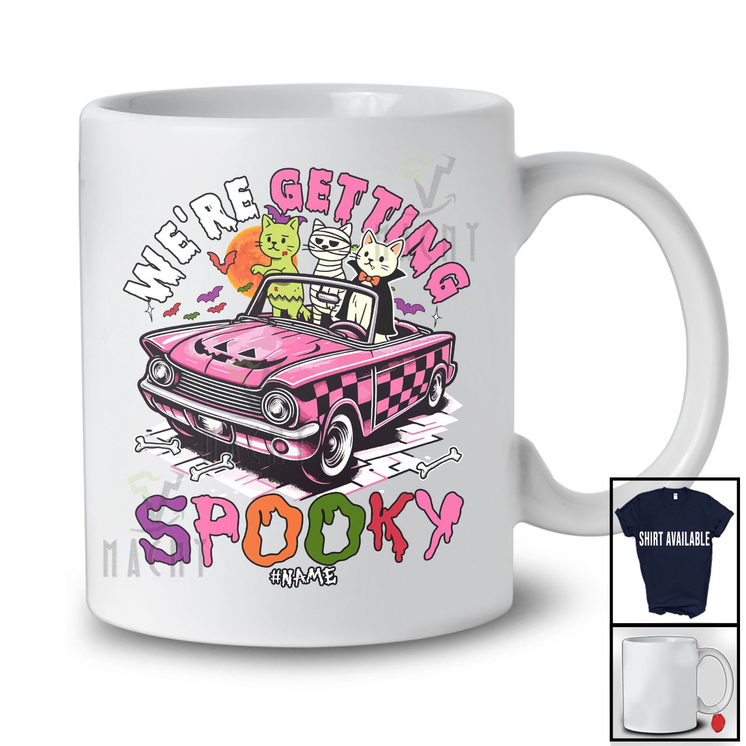 This Personalized Custom Name We're Getting Spooky; Scary Halloween Zombie Mummy Cat On Car T-Shirt is great idea gift for your family, friends in this birthday, christmas, mother's day, father's day, patrick's day or any holiday.
