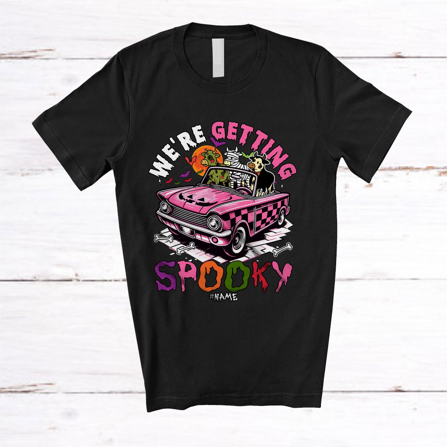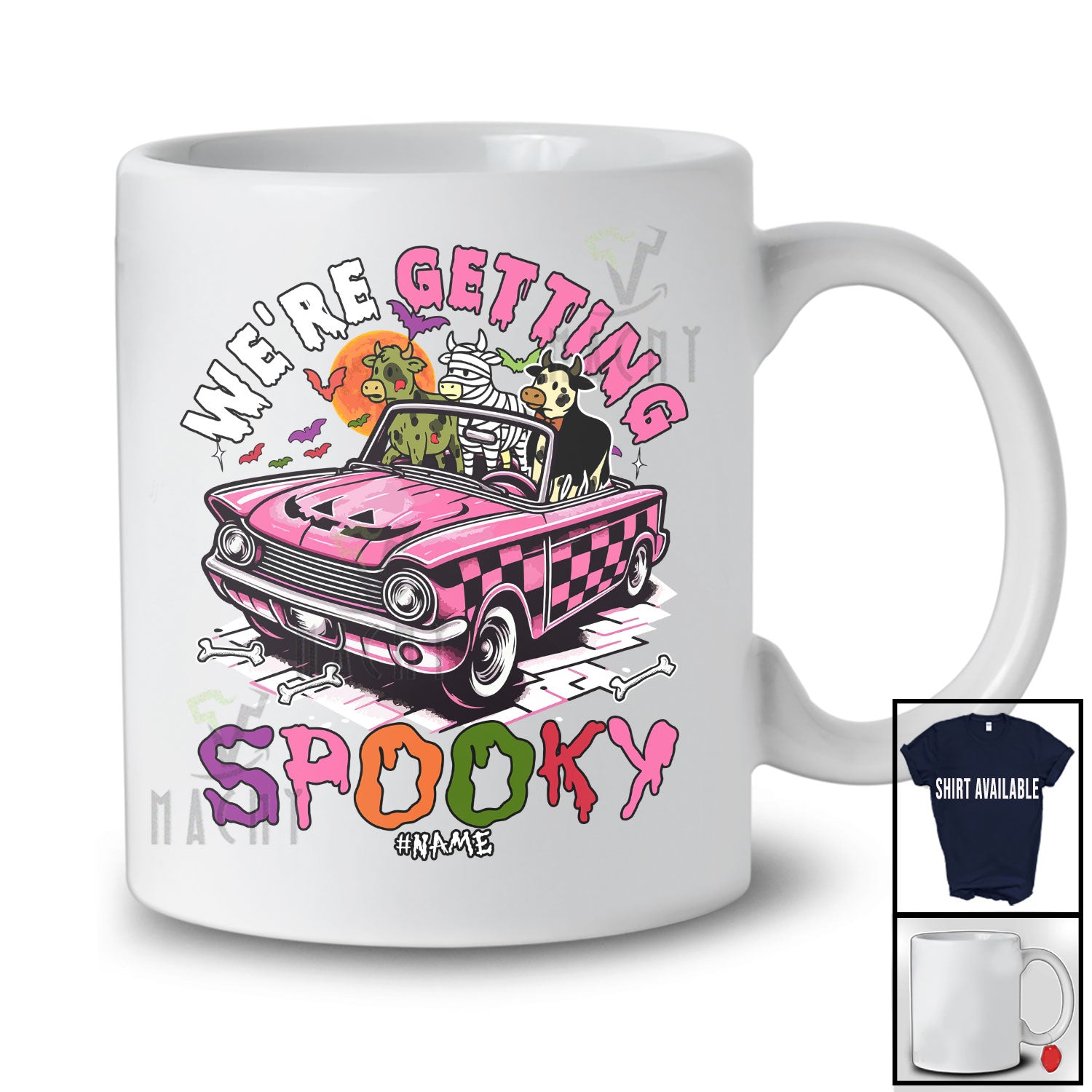 This Personalized Custom Name We're Getting Spooky; Scary Halloween Zombie Mummy Cow On Car T-Shirt is great idea gift for your family, friends in this birthday, christmas, mother's day, father's day, patrick's day or any holiday.