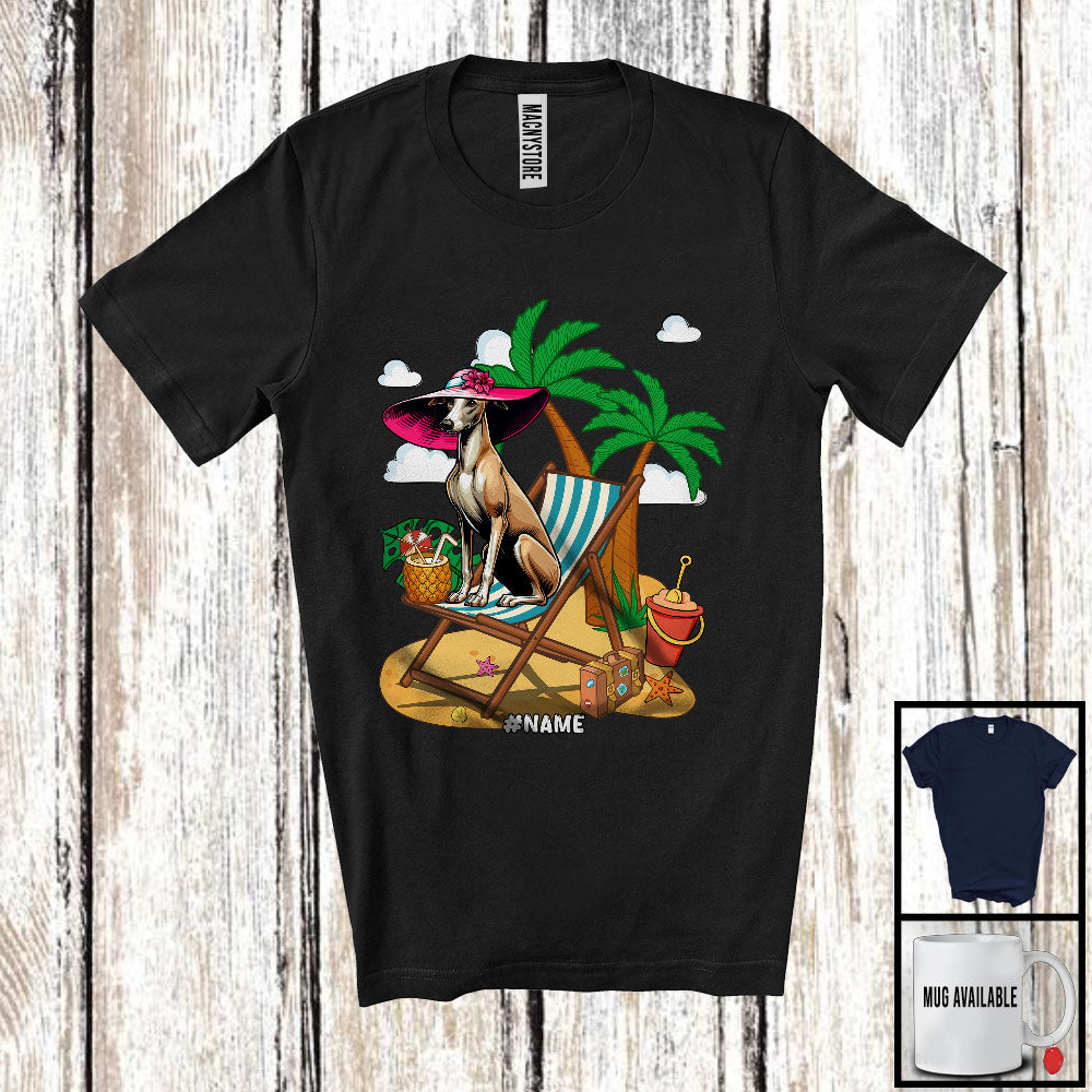 Personalized Custom Name Whippet On Beach, Lovely Summer Vacation Palm Tree, Family T-Shirt