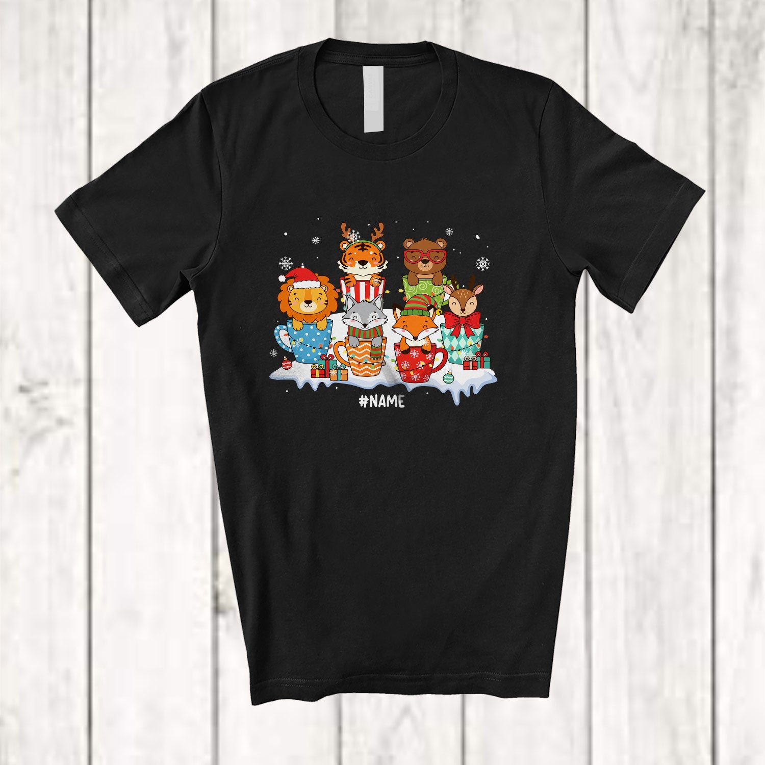 Personalized Custom Name Wild Animals Coffee; Lovely Christmas Santa Lion Tiger Bear Wolf; Family T-Shirt