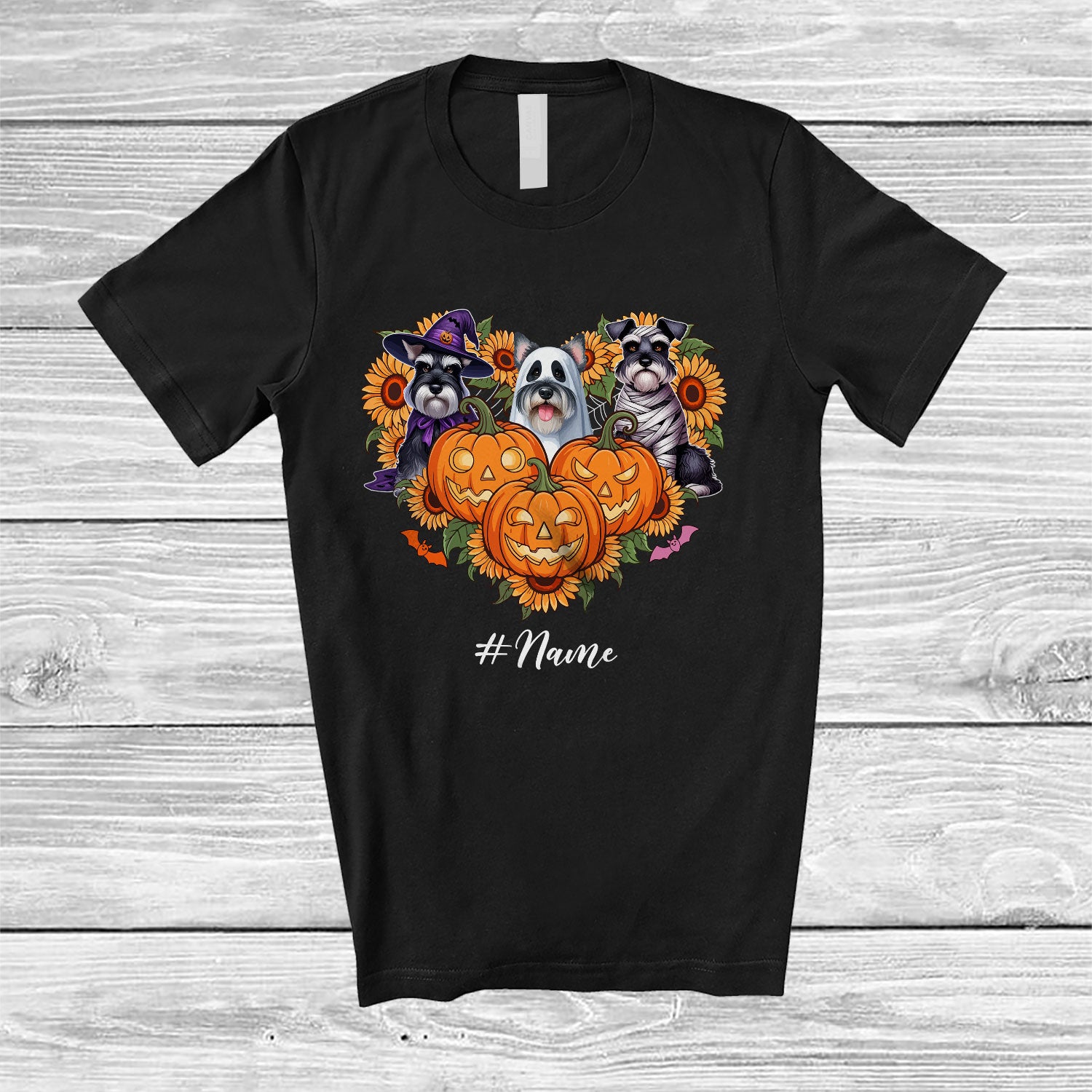 Personalized Custom Name Witch Boo Schnauzer Heart; Lovely Halloween Sunflower Pumpkin T-Shirt. This cotton t-shirt is a durable staple product with a classic fit. One of the most popular items, it has a relaxed style made for everyday and casual wear.