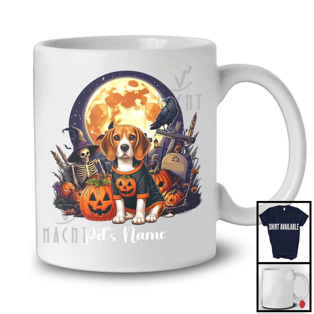 Personalized Custom Puppy's Name Beagle Dog, Lovely Halloween Skeleton Pumpkins T-Shirt