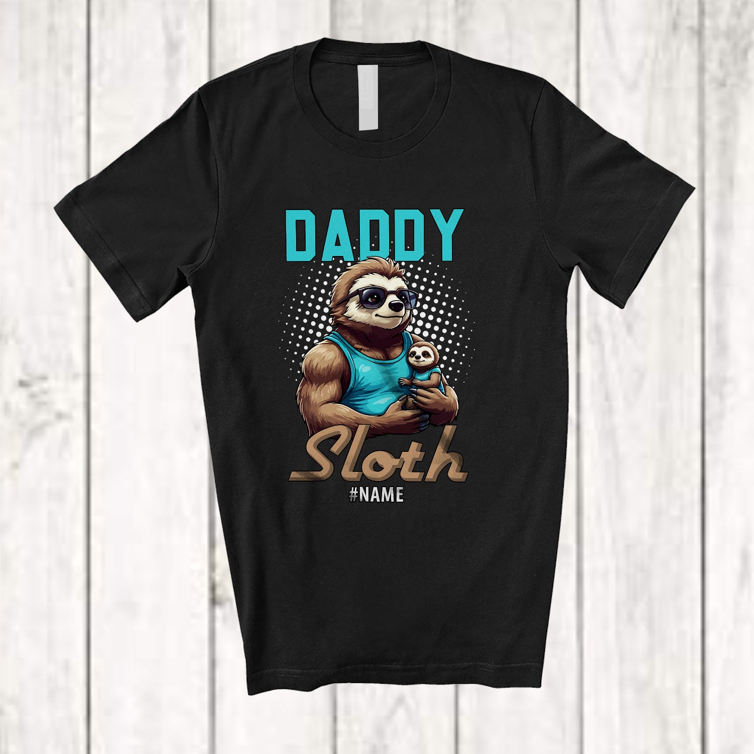 Personalized Daddy Sloth; Humorous Father's Day Custom Name Muscle Sloth Dad Boy Family T-Shirt