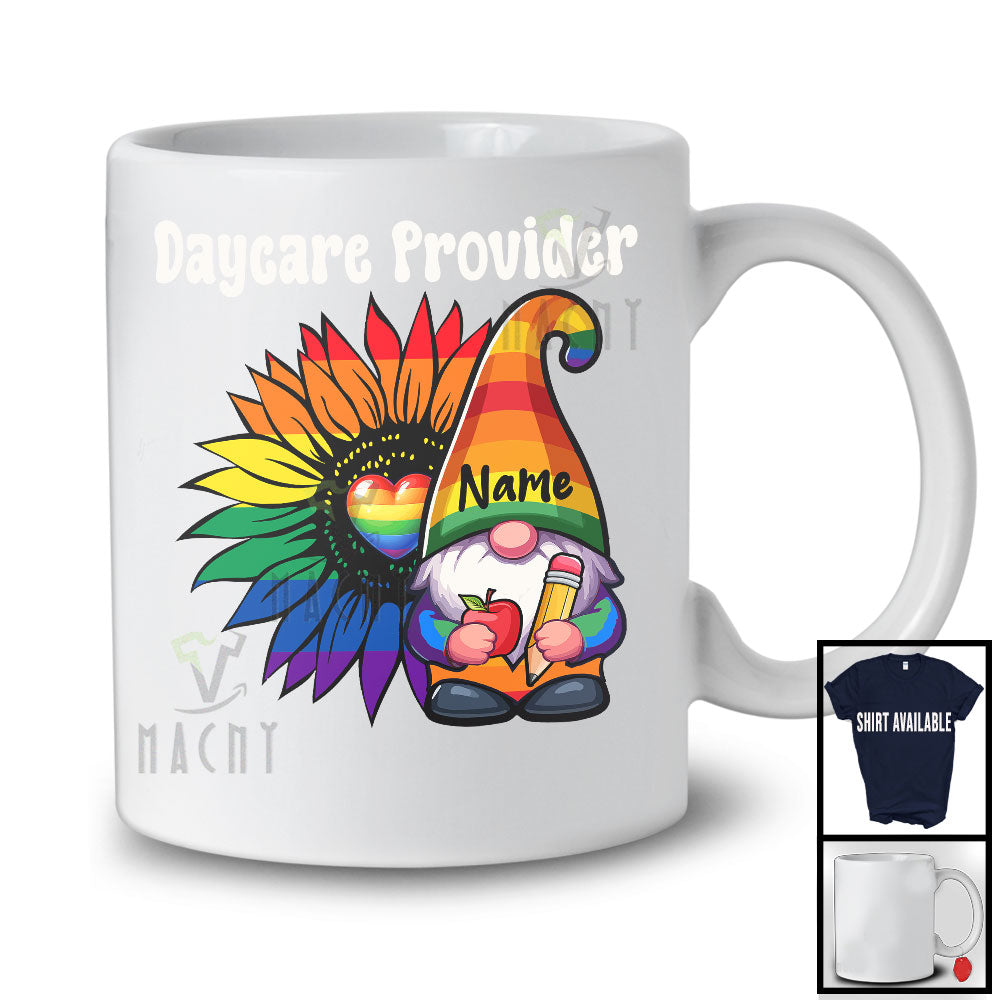 This Personalized Daycare Provider, Colorful LGBTQ Pride Sunflower Gnome, Custom Name Gay Rainbow T-Shirt is great idea gift for your family, friends in this birthday, christmas, mother's day, father's day, patrick's day or any holiday.
