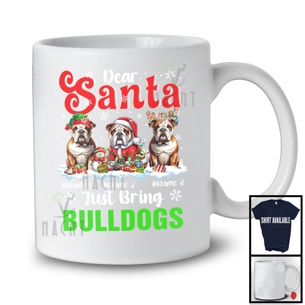 Personalized Dear Santa Just Bring Bulldogs. Lovely Christmas Custom Name Snowing T-Shirt