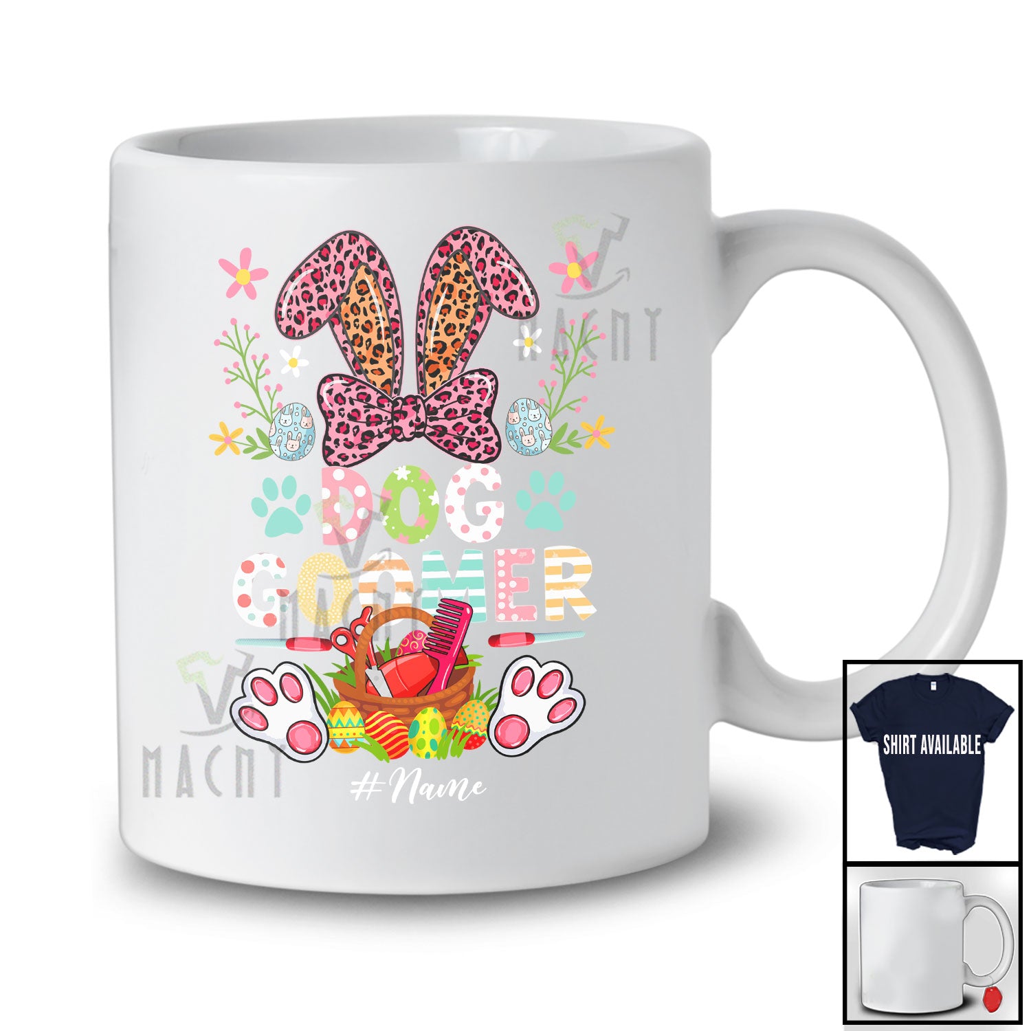 new MacnyStore - Personalized Dog Groomer; Proud Easter Flowers Leopard Bunny; Custom Name Dog Groomer Family T-Shirt – Macnystore