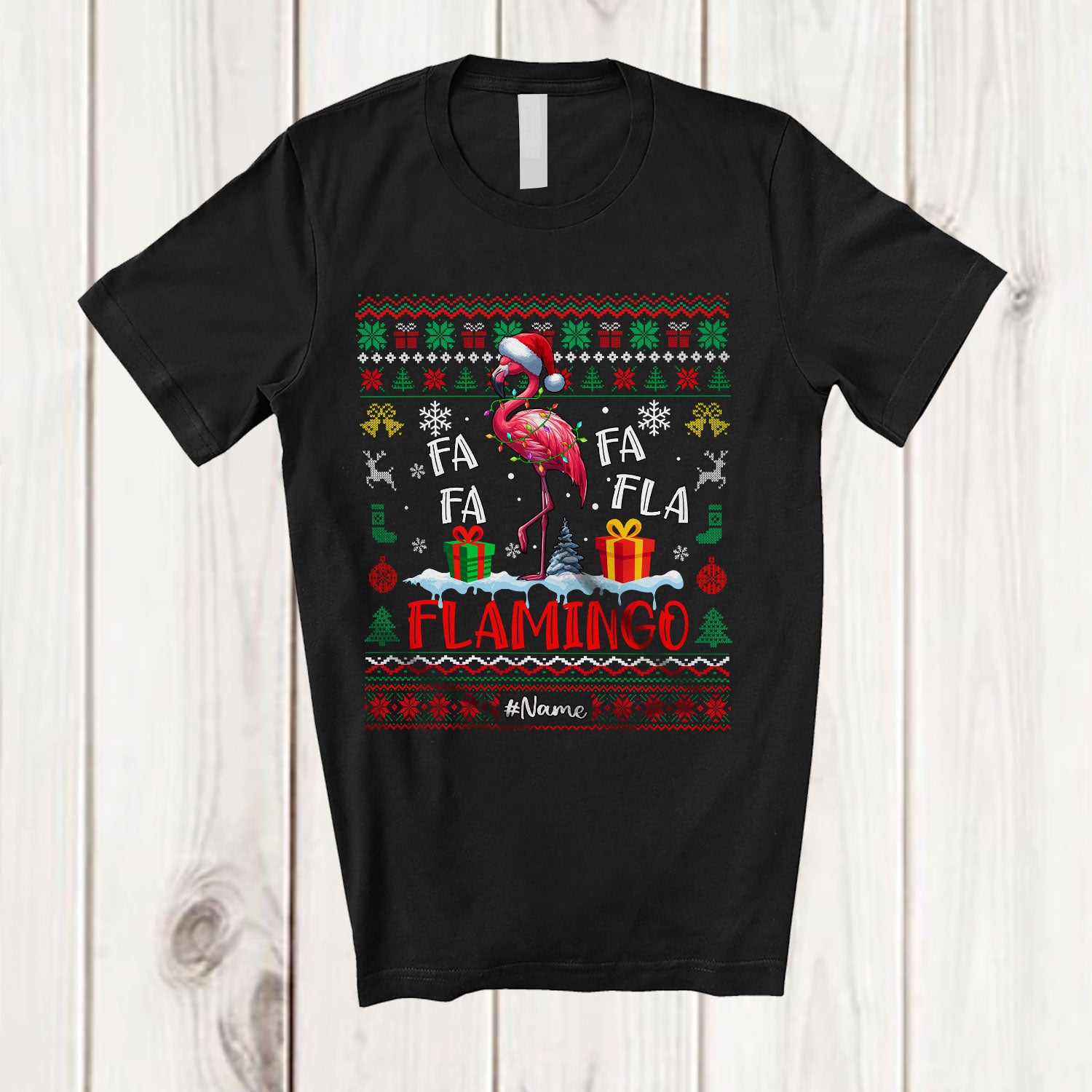 Personalized Fa La Fla Flamingo; Joyful Christmas Sweater; Custom Name Santa Flamingo T-Shirt