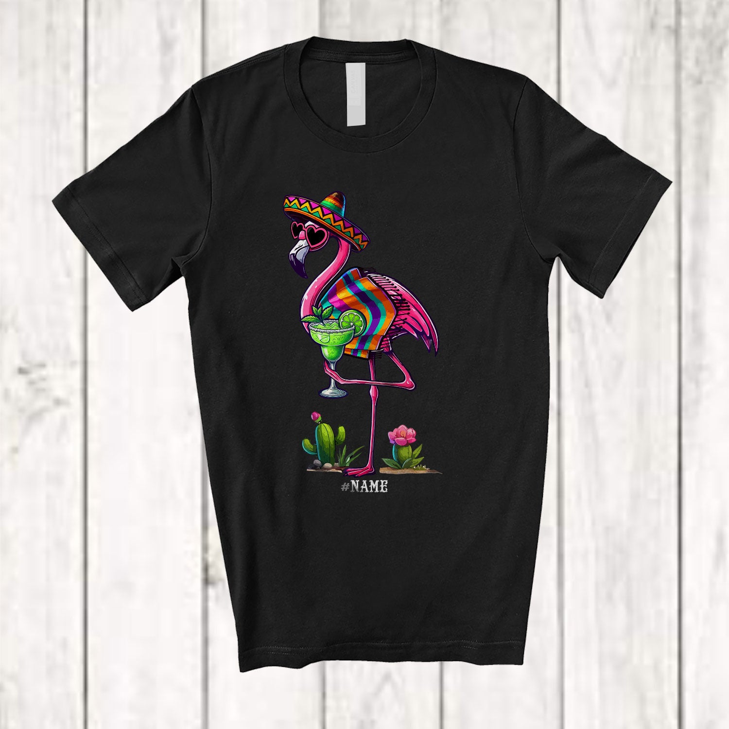 Personalized Flamingo Drinking Margarita; Adorable Flamingo With Sunglasses; Custom Name Drunker T-Shirt