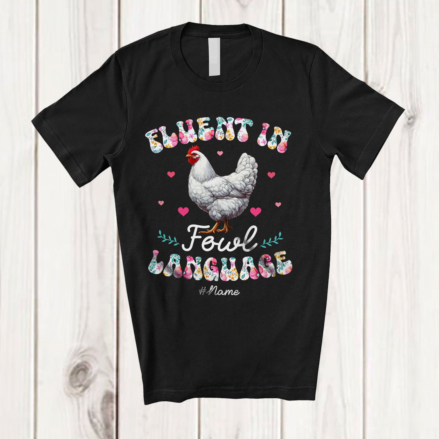 Personalized Fluent In Fowl Language; Lovely Mother's Day Chicken Floral; Custom Name Farmer T-Shirt