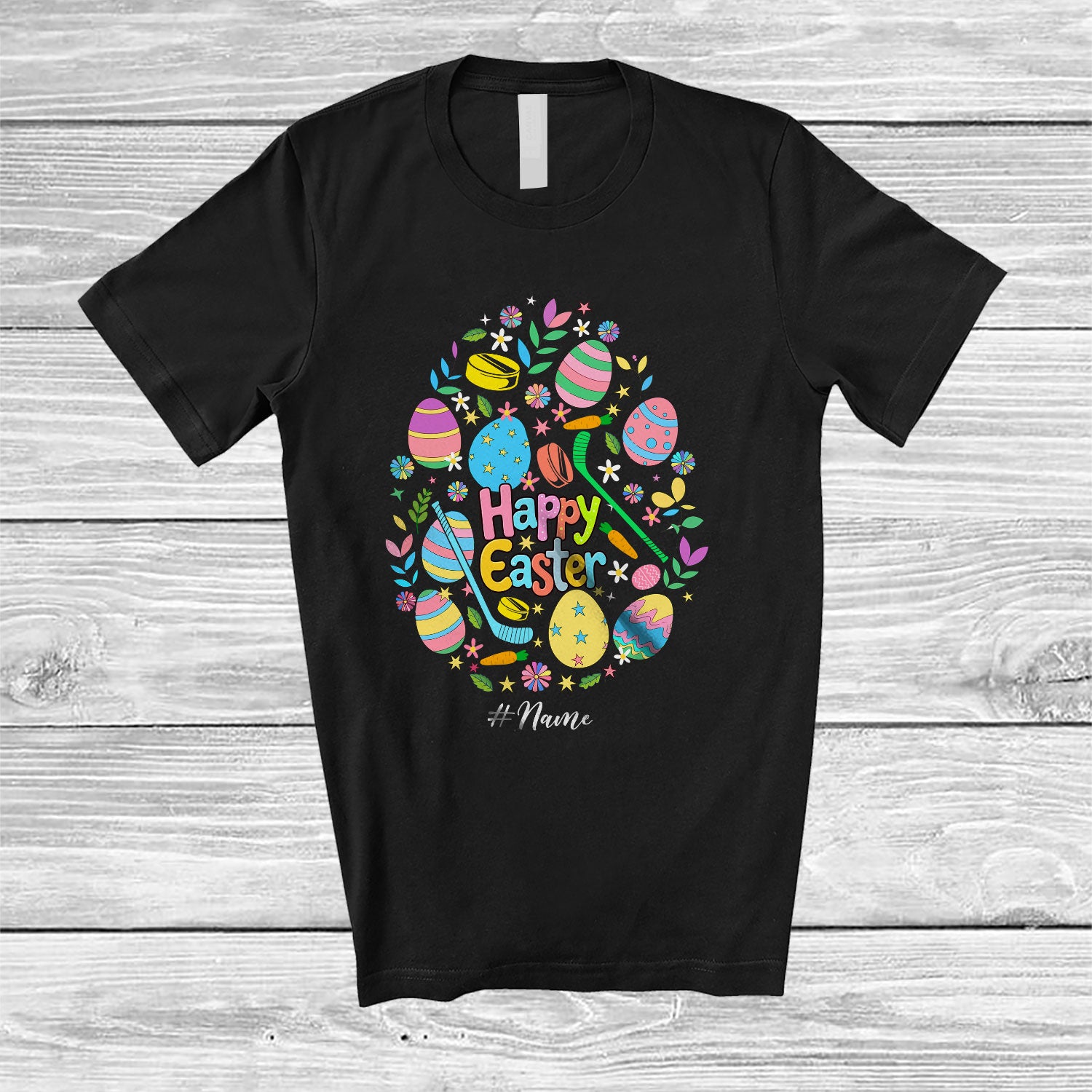 Personalized Happy Easter; Lovely Custom Name Hockey Easter Egg Shape; Sport Player T-Shirt