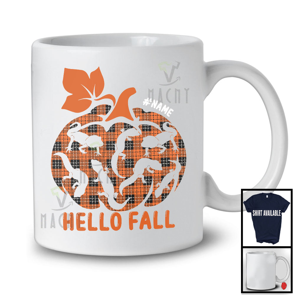 Personalized Hello Fall; Cute Halloween Thanksgiving Pumpkin Plaid; Custom Name Bearded Dragon T-Shirt
