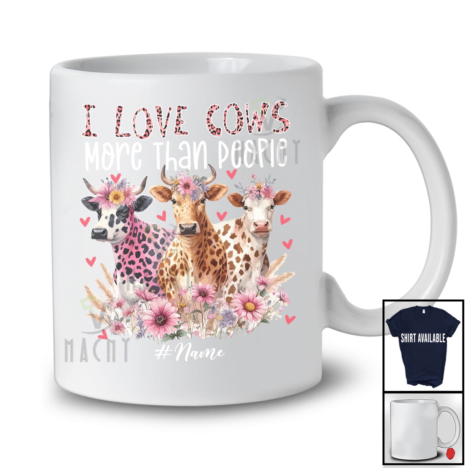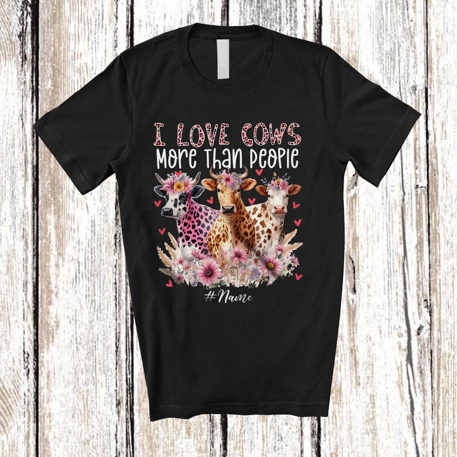Personalized I Love Cows More Than People; Floral Mother's Day Leopard Custom Name Farmer T-Shirt