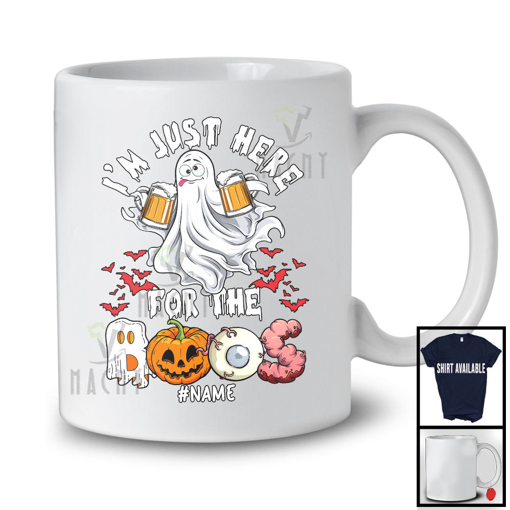 Personalized I'm Just Here For The Boos, Horror Halloween Custom Name Boo Ghost, Drinking Beer T-Shirt