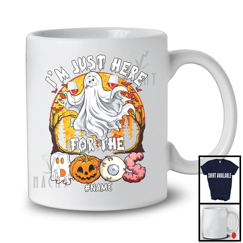 Personalized I'm Just Here For The Boos, Horror Halloween Moon Custom Name Boo Ghost, Drinking Wine T-Shirt