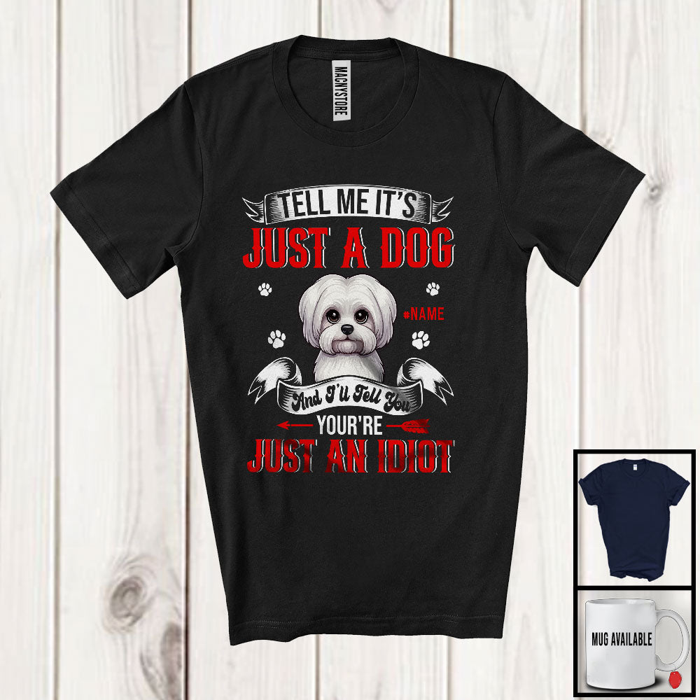 Personalized Just A Dog You're Just An Idiot; Humorous Custom Name Maltese Owner T-Shirt