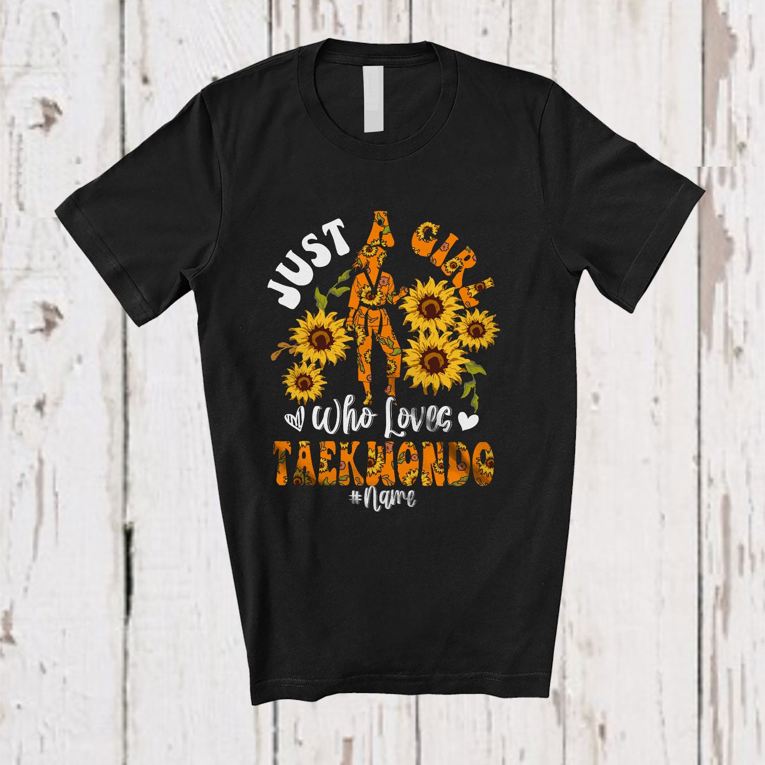 Personalized Just A Girl Who Loves Taekwondo Funny Cute Sunflowers Floral Taekwondo Sport Player Team T-Shirt