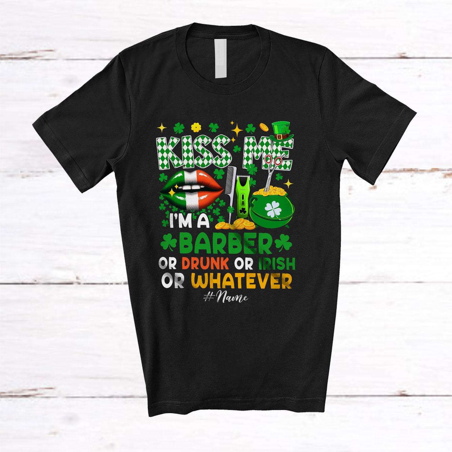 The Personalized Kiss Me I'm A Barber Or Drunk; Joyful St. Patrick's Day Lips; Custom Name Jobs T-Shirt is the yin, to your yang. You've found what you're looking for.
