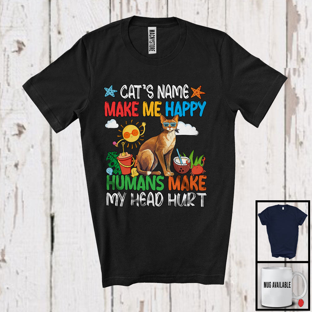 This Personalized Kitten's Custom Name Make Me Happy, Colorful Summer Vacation Abyssinian Owner T-Shirt is great idea gift for your family, friends in this birthday, christmas, mother's day, father's day, patrick's day or any holiday.