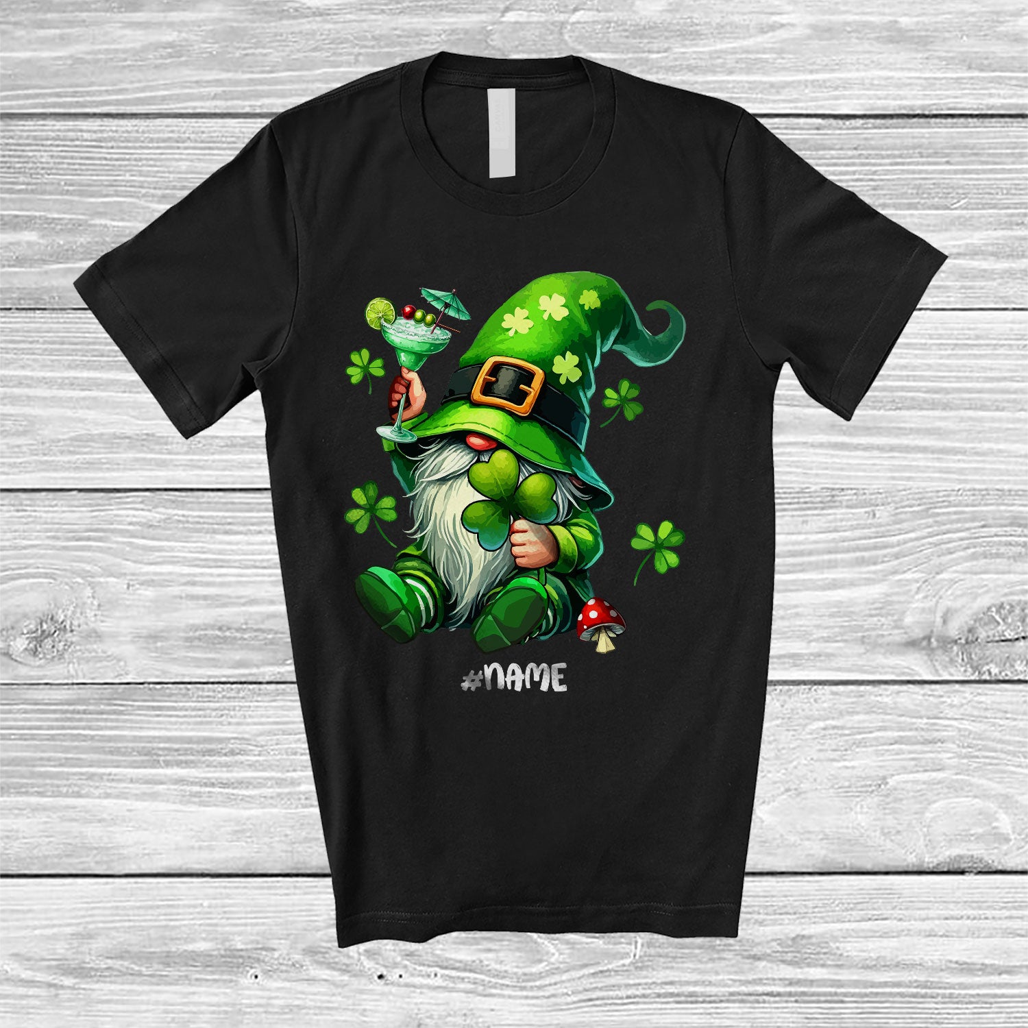 • Personalized Leprechaun Gnome Drinking Cocktail; Happy St. Patrick's Day Custom Name Drunker T-Shirt. This cotton t-shirt is a durable staple product with a classic fit. One of the most popular items, it has a relaxed style made for everyday and casual wear.