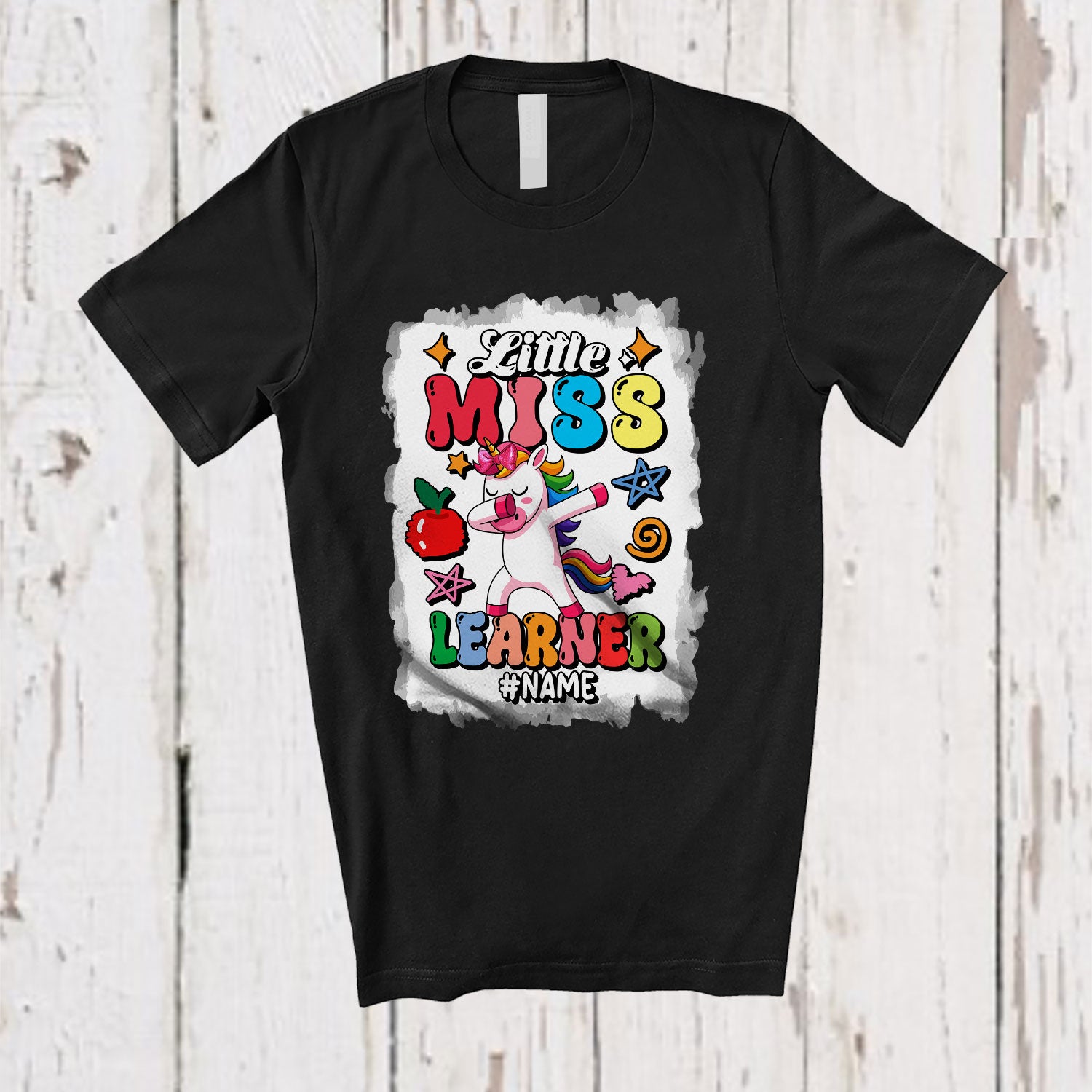 • Personalized Little Miss Learner; Amazing Back To School Unicorn; Custom Name Librarian Teacher T-Shirt. This cotton t-shirt is a durable staple product with a classic fit. One of the most popular items, it has a relaxed style made for everyday and casual wear.