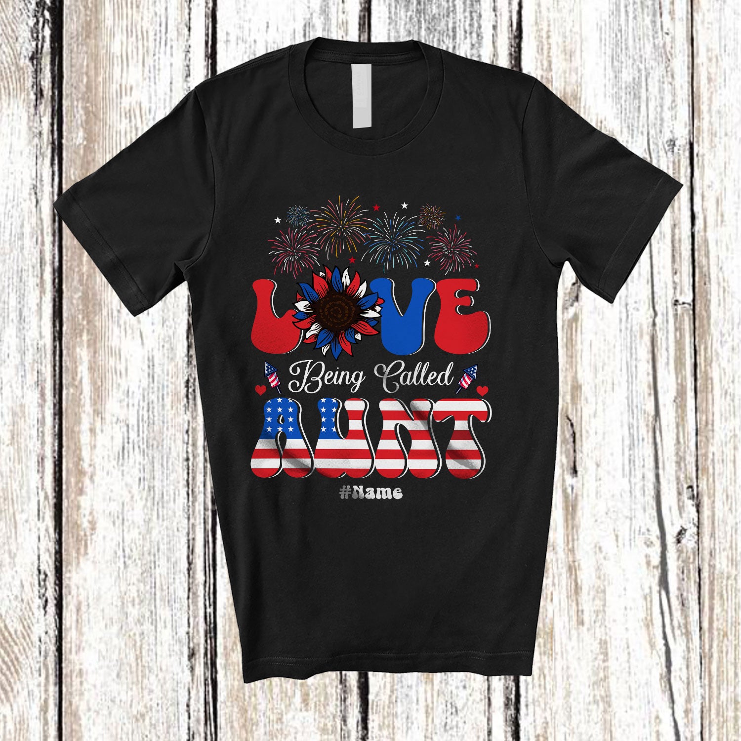 The Personalized Love Being Called Aunt; Cheerful 4th Of July Sunflower; Custom Name Patriotic T-Shirt is far and away, one of our most popular items. People can't seem to get enough of it.