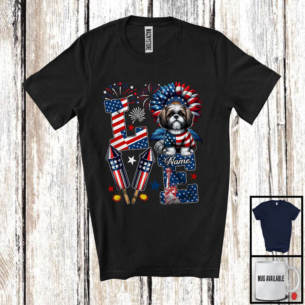 Personalized Love, Lovely 4th Of July Custom Name Shih Tzu, Sunflower US Flag Patriotic T-Shirt