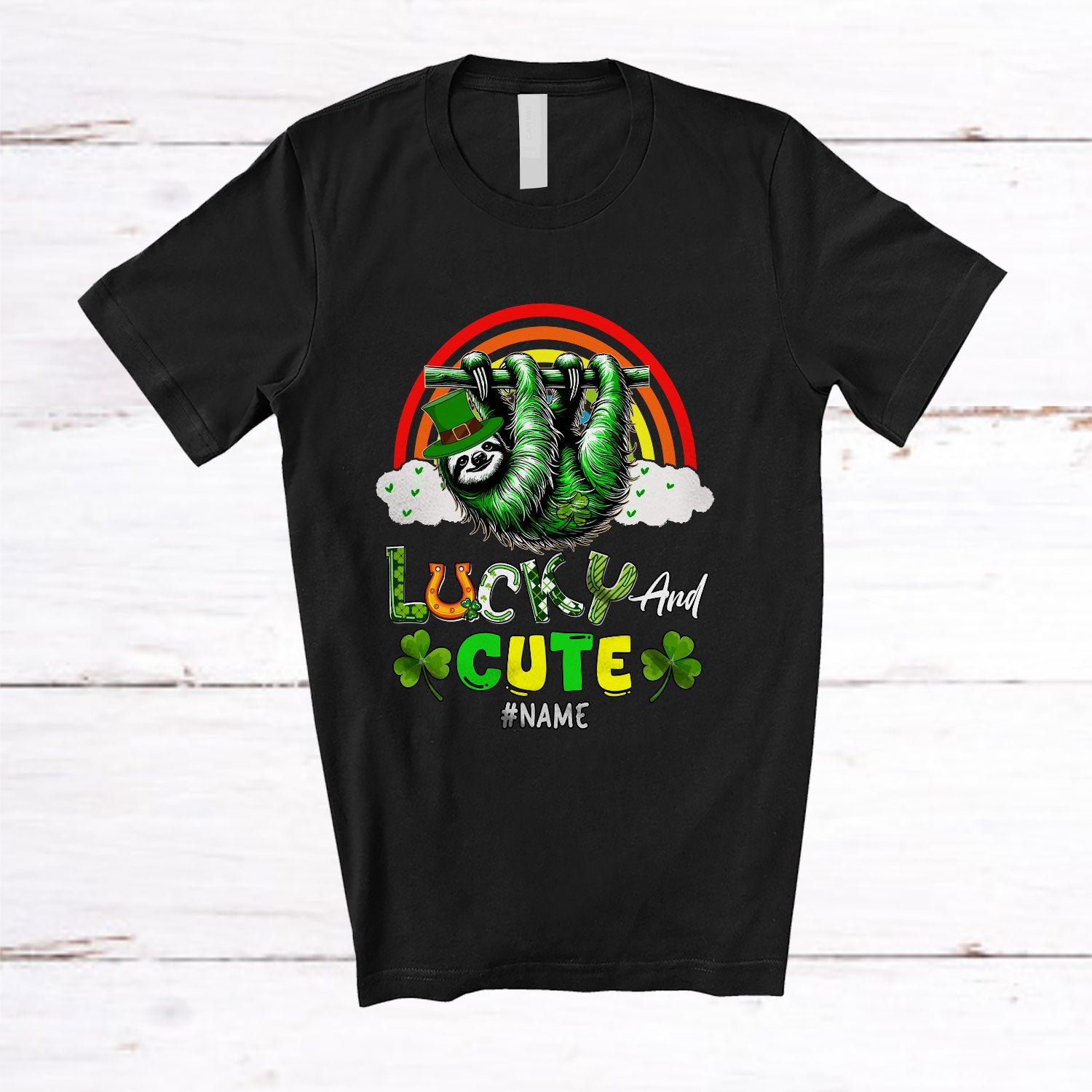 Personalized Lucky And Cute; Lovely St. Patrick's Day Custom Name Sloth; Shamrocks Rainbow T-Shirt. This cotton t-shirt is a durable staple product with a classic fit. One of the most popular items, it has a relaxed style made for everyday and casual wear.