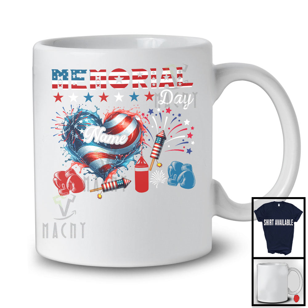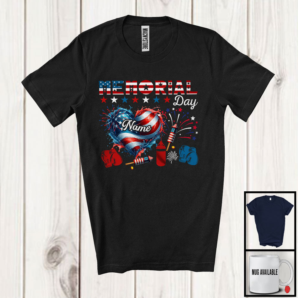 Personalized Memorial Day, Proud USA Flag Heart Boxing Patriotic, Sport Player Custom Name T-Shirt