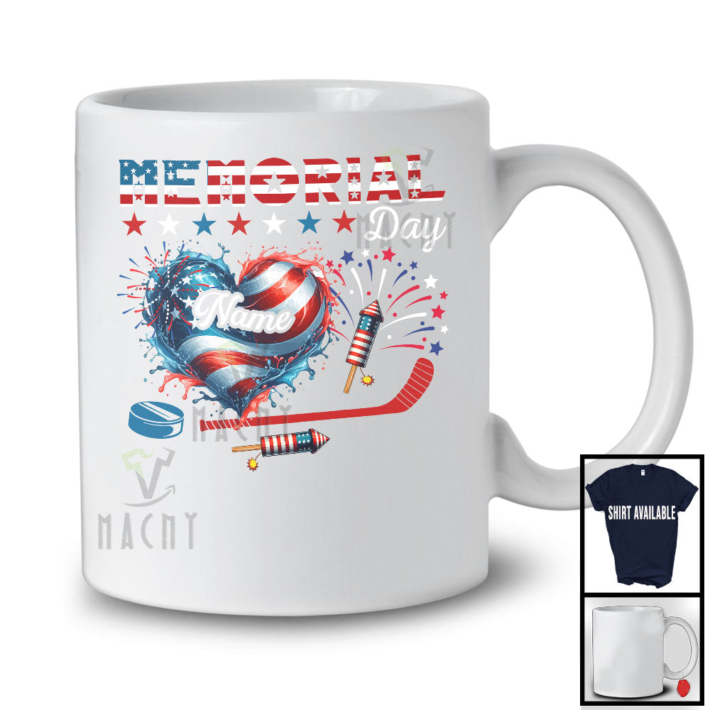 Personalized Memorial Day, Proud USA Flag Heart Hockey Patriotic, Sport Player Custom Name T-Shirt