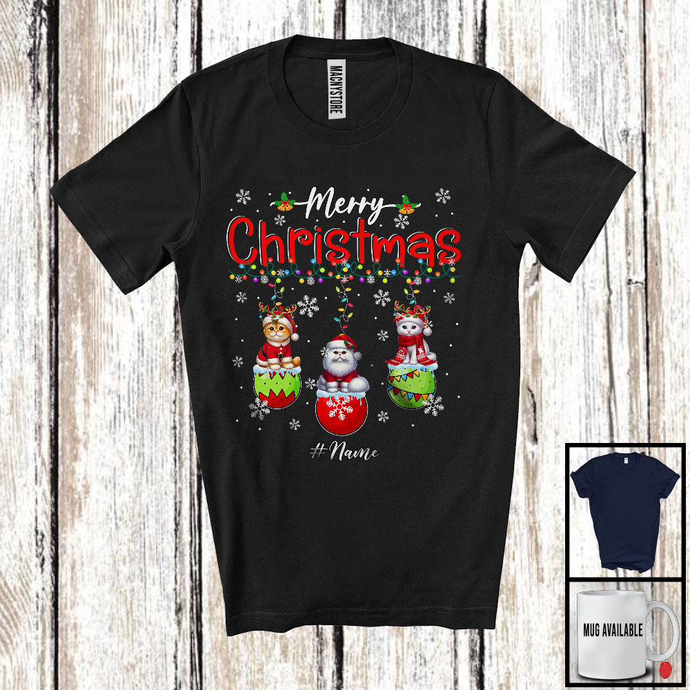 new MacnyStore - Personalized Merry Christmas; Lovely Three Santa Cat In X-mas Socks; Custom Name Family T-Shirt – Macnystore