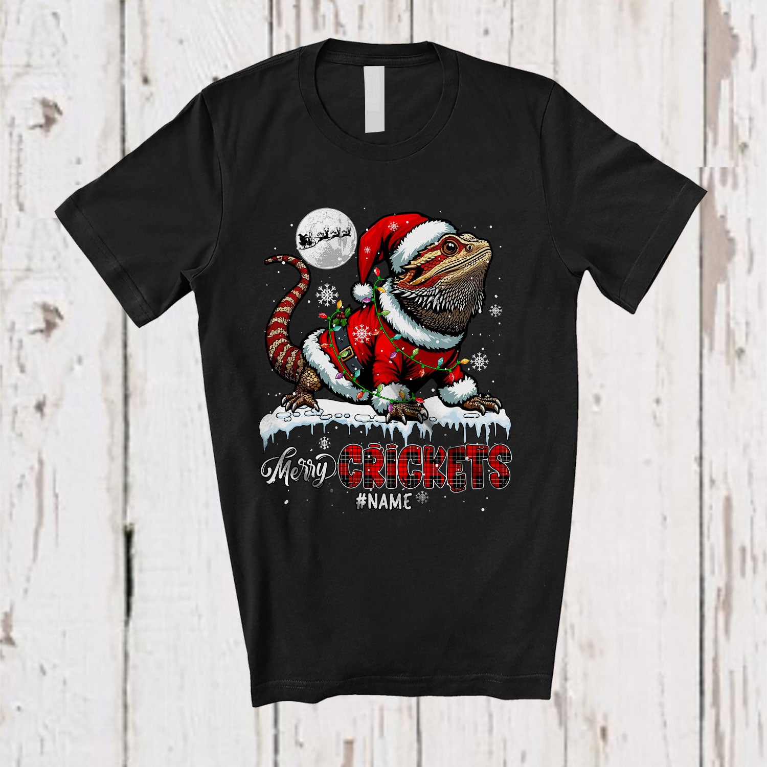 Personalized Merry Crickets; Amazing Christmas Custom Name Bearded Dragon; Snowing Plaid T-Shirt
