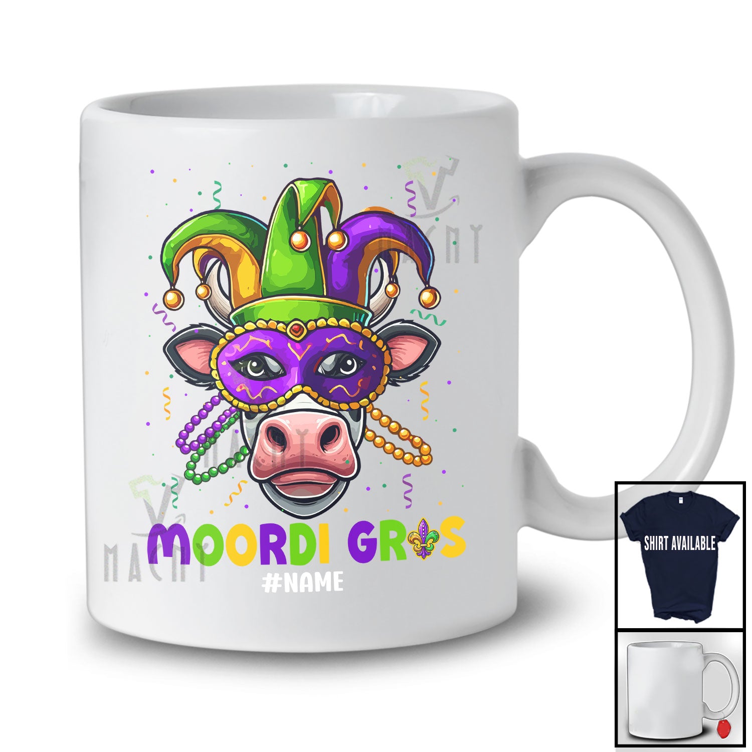 new MacnyStore - Personalized Moordi Gras; Humorous Mardi Gras Mask Beads Cow Farmer; Custom Name Parades T-Shirt – Macnystore
