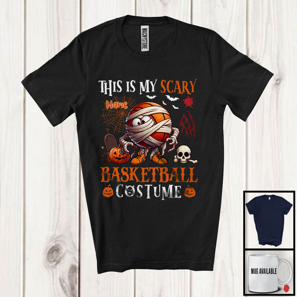Personalized My Scary Basketball Costume; Cool Halloween Custom Name Mummy Ball; Sports T-Shirt. This cotton t-shirt is a durable staple product with a classic fit. One of the most popular items, it has a relaxed style made for everyday and casual wear.