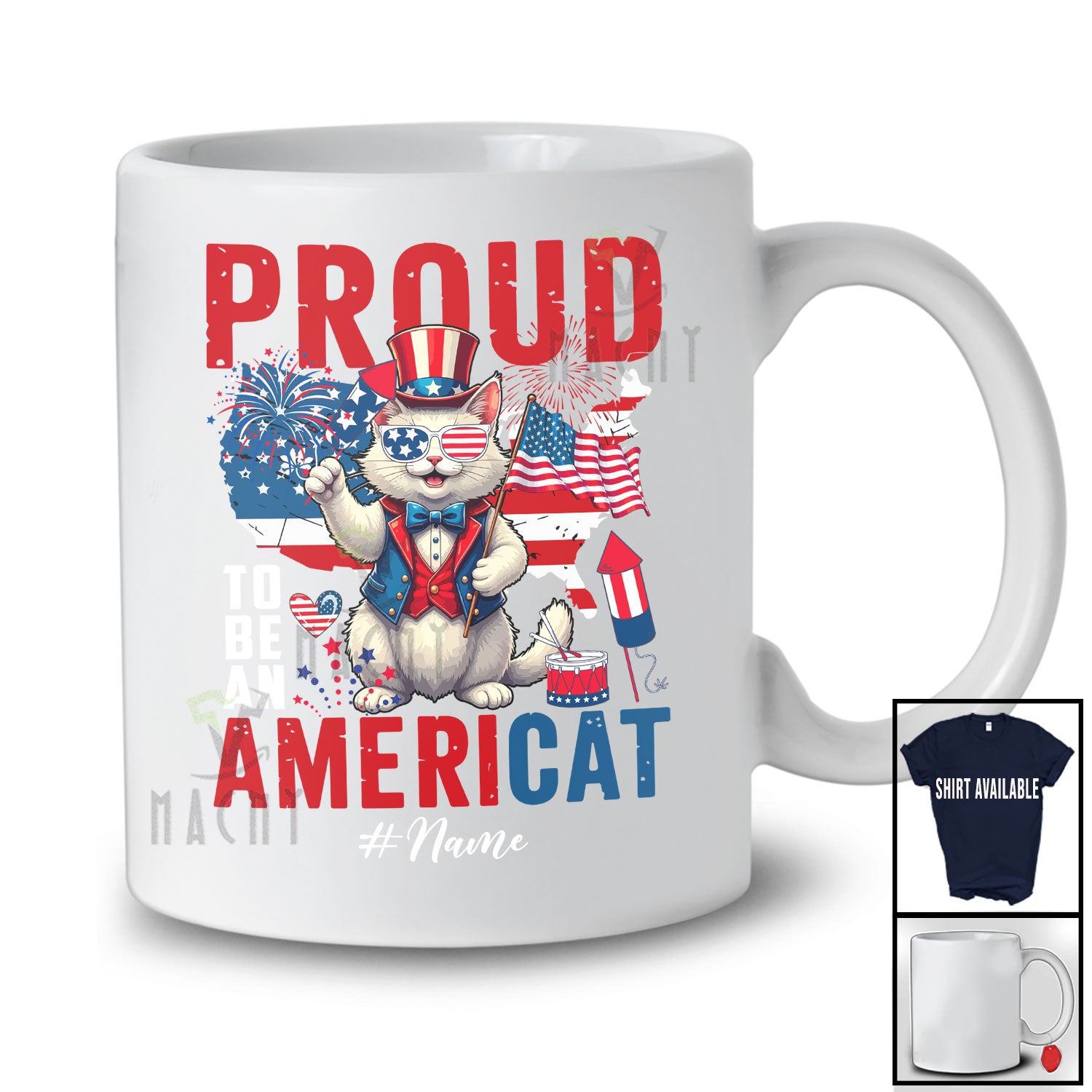 Personalized Proud To Be An Americat; Joyful 4th Of July Cat American Flag; Patriotic T-Shirt. This cotton t-shirt is a durable staple product with a classic fit. One of the most popular items, it has a relaxed style made for everyday and casual wear.