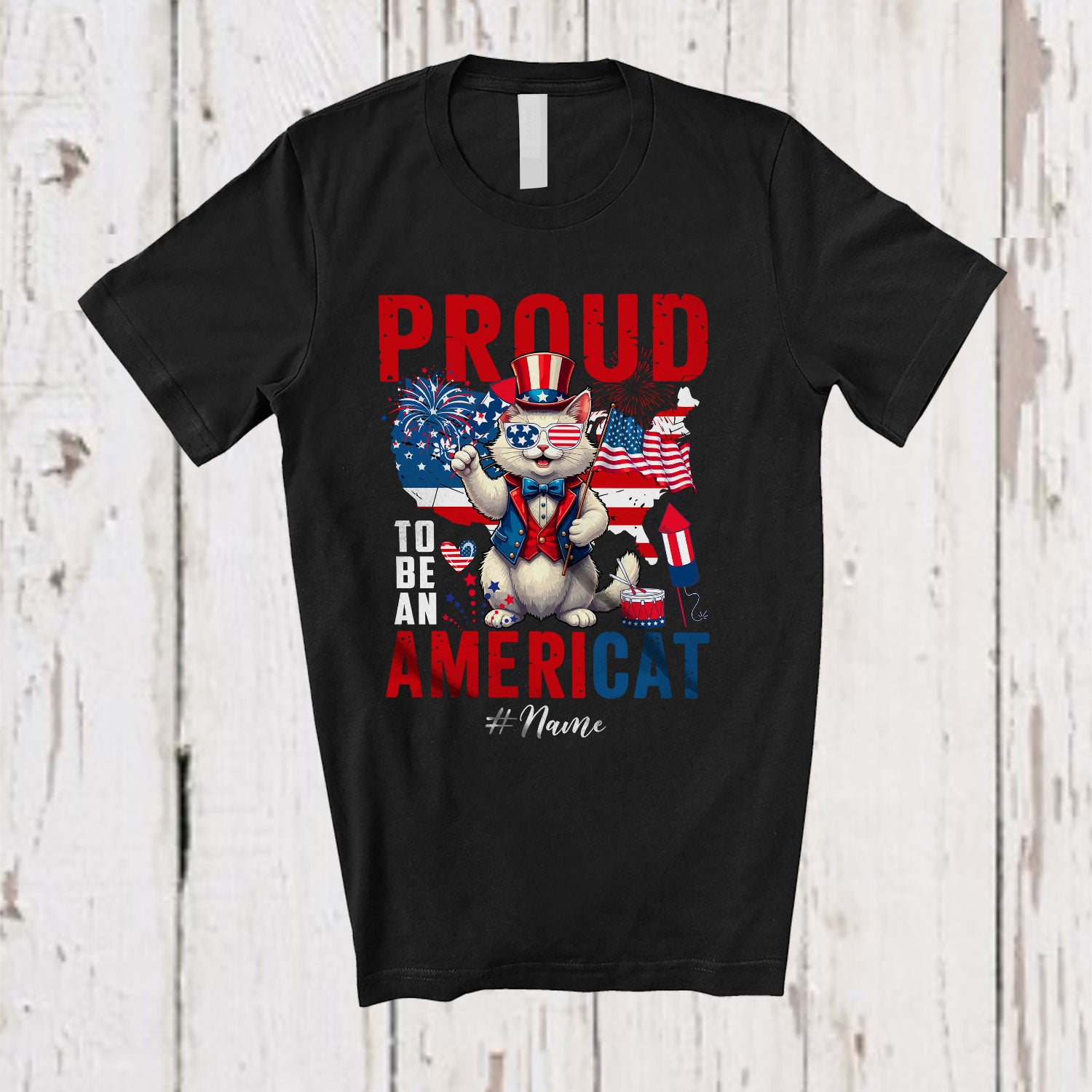 Personalized Proud To Be An Americat; Joyful 4th Of July Cat American Flag; Patriotic T-Shirt