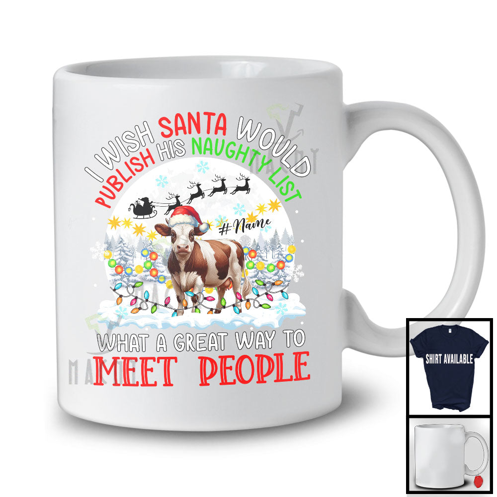 Personalized Publish His Naughty List; Lovely Christmas Custom Name Cow Santa T-Shirt