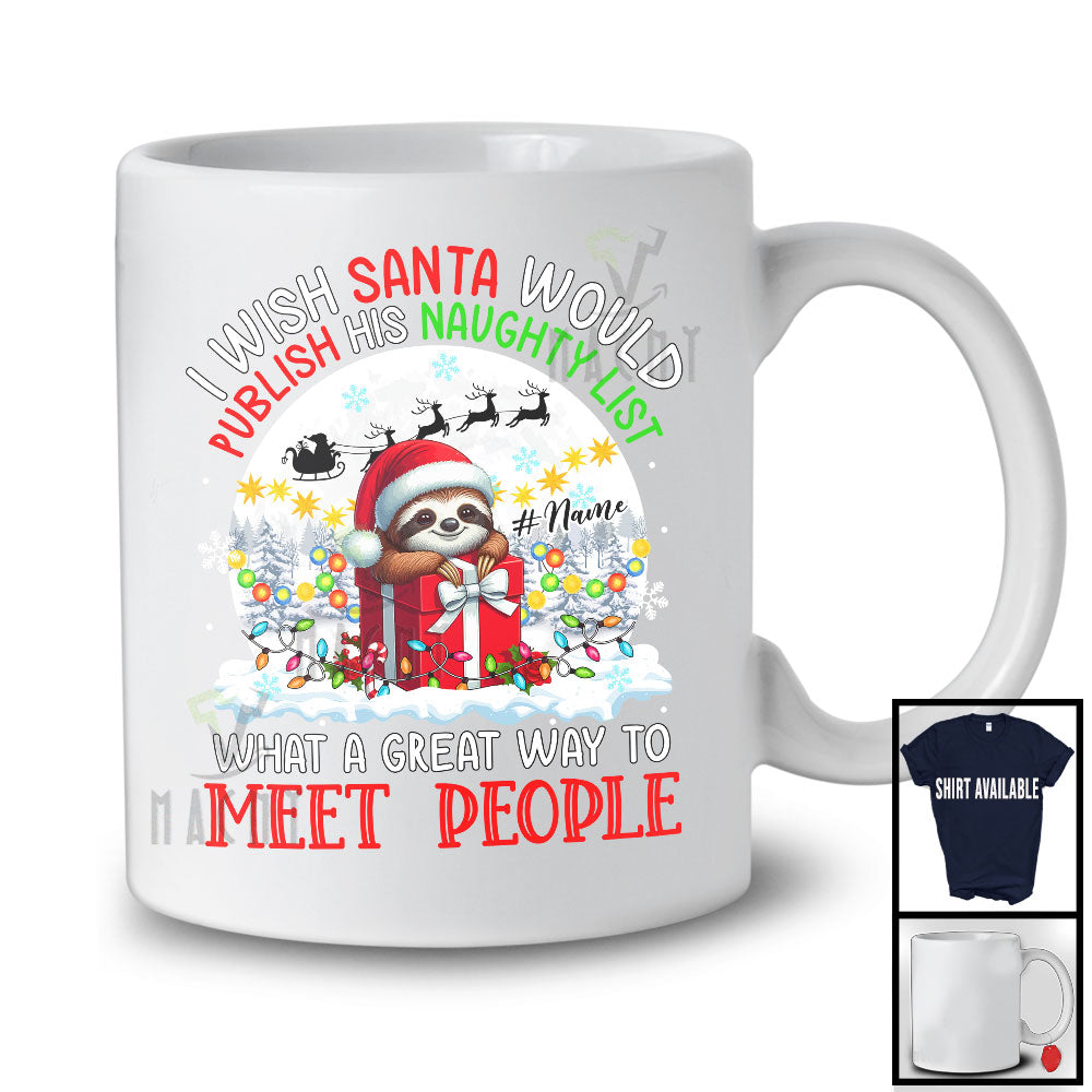 Personalized Publish His Naughty List; Lovely Christmas Custom Name Sloth Santa T-Shirt