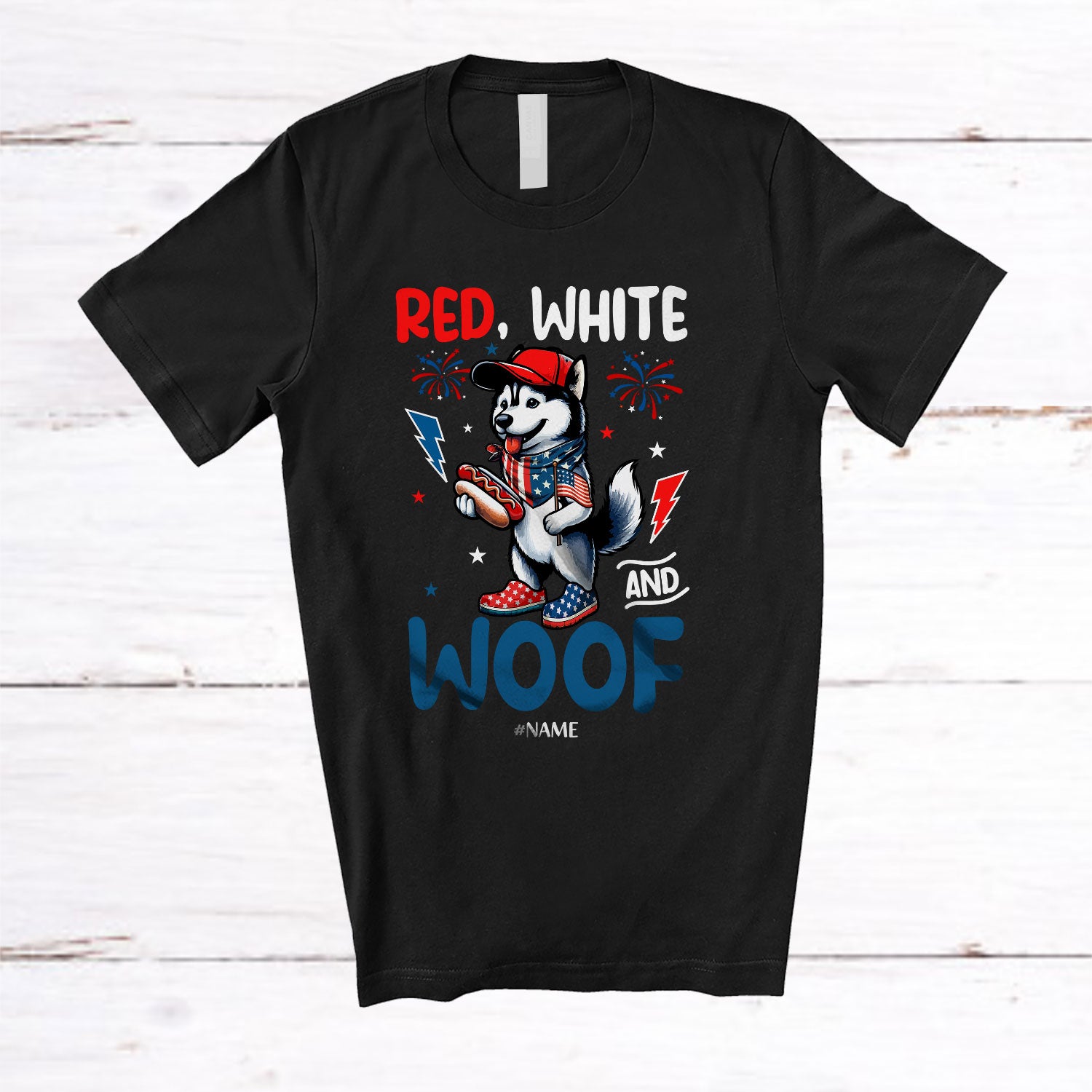 Personalized Red White And Woof; Lovely 4th Of July Custom Name Pit Husky Hot Dog; Patriotic T-Shirt