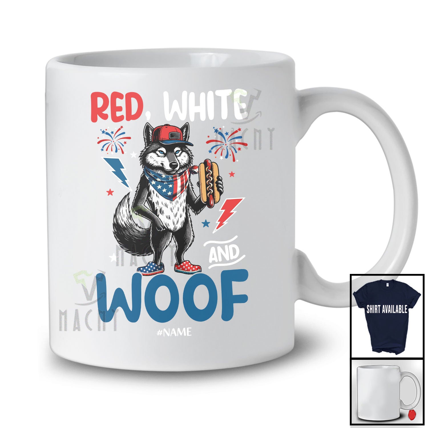 This Personalized Red White And Woof; Lovely 4th Of July Custom Name Wolf Hot Dog; Patriotic T-Shirt is great idea gift for your family, friends in this birthday, christmas, mother's day, father's day, patrick's day or any holiday.