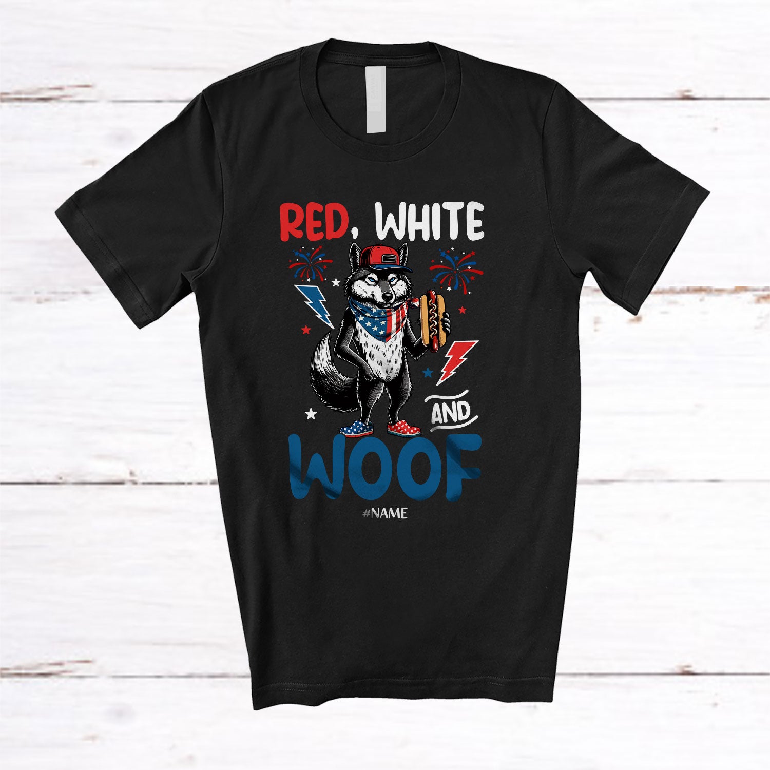 Personalized Red White And Woof; Lovely 4th Of July Custom Name Wolf Hot Dog; Patriotic T-Shirt