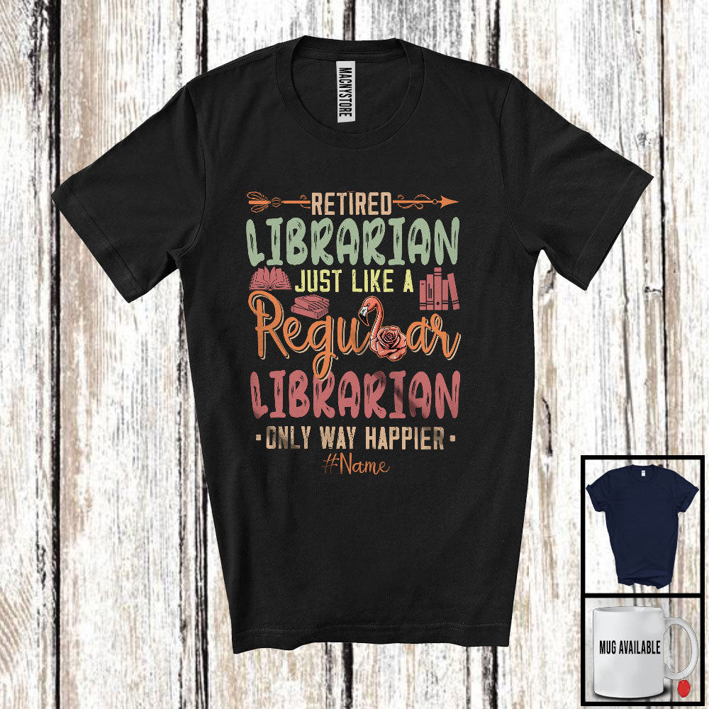 Personalized Retired Librarian Definition Way Happier, Lovely Retirement Flamingo Flowers T-Shirt