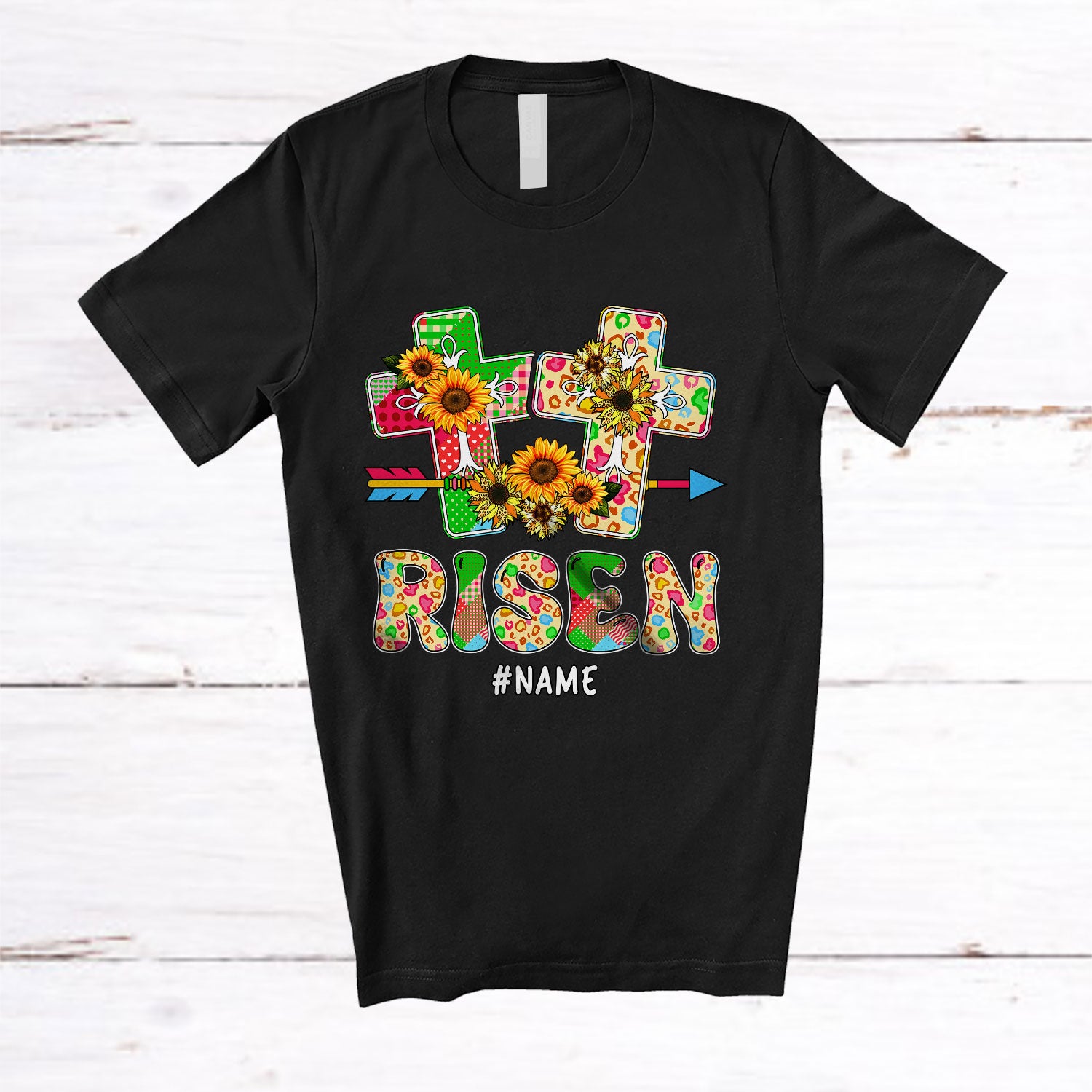 Personalized Risen; Awesome Easter Leopard Cross Sunflowers; Custom Name Family T-Shirt