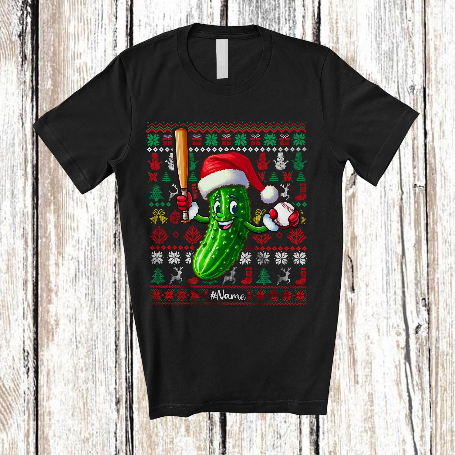 The Personalized Santa Pickle Playing Baseball; Lovely Christmas Sweater Custom Name Sport Player T-Shirt destined to impress, and priced at only $12.95, for a limited time.