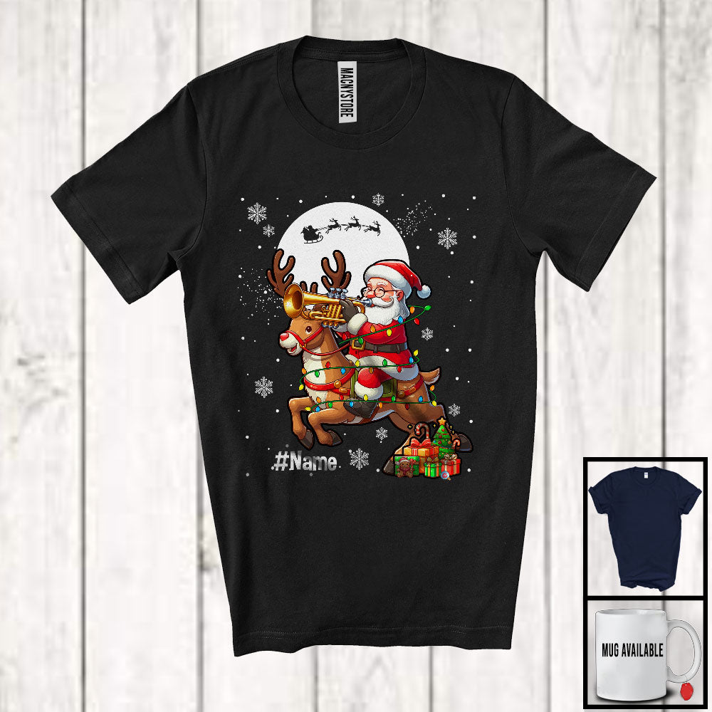 new MacnyStore - Personalized Santa With Trumpet Riding Reindeer; Joyful Christmas Custom Name Musical Instruments T-Shirt – Macnystore