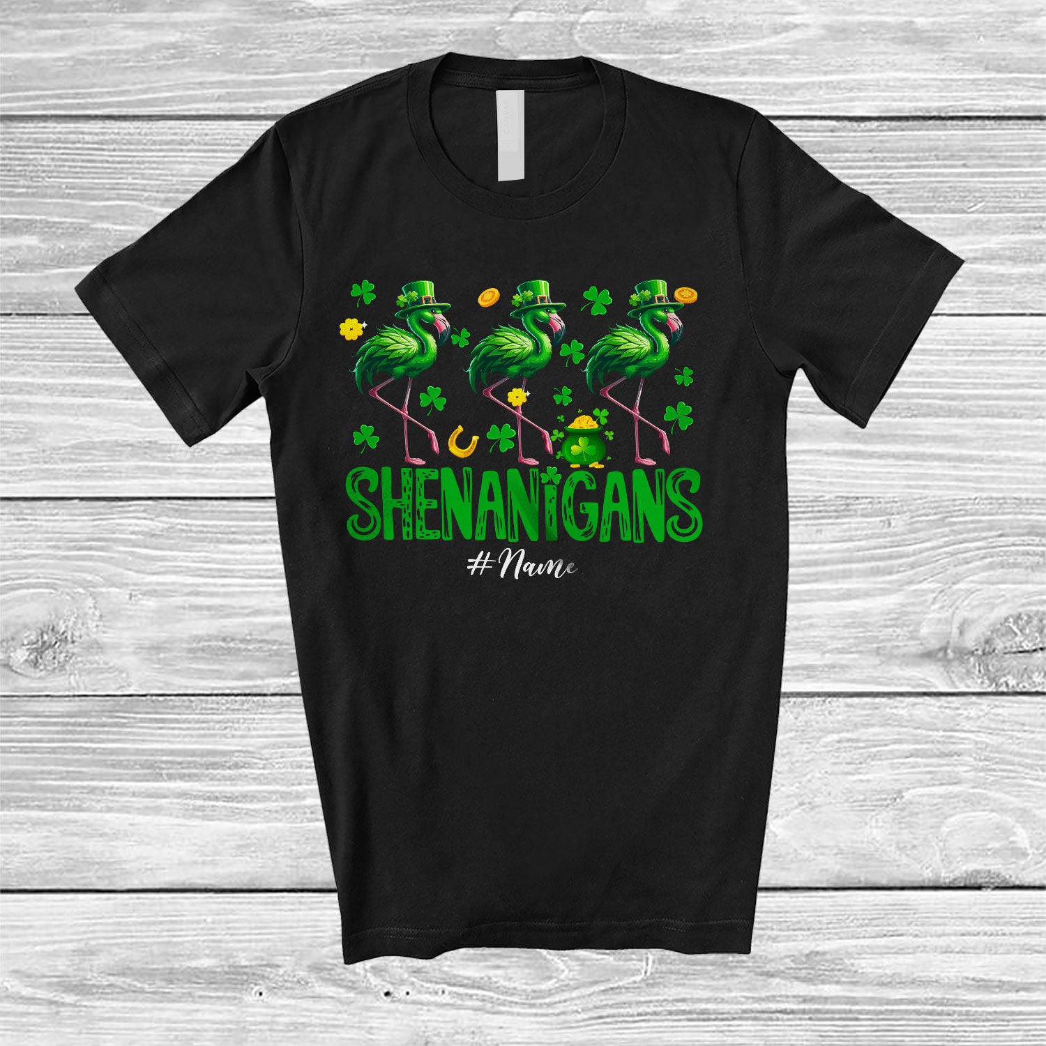 The Personalized Shenanigans; Amusing St. Patrick's Day Custom Name Three Irish Flamingos Leprechaun T-Shirt was built with people like you in mind. Something to keep you happy. Every. Single. Day.