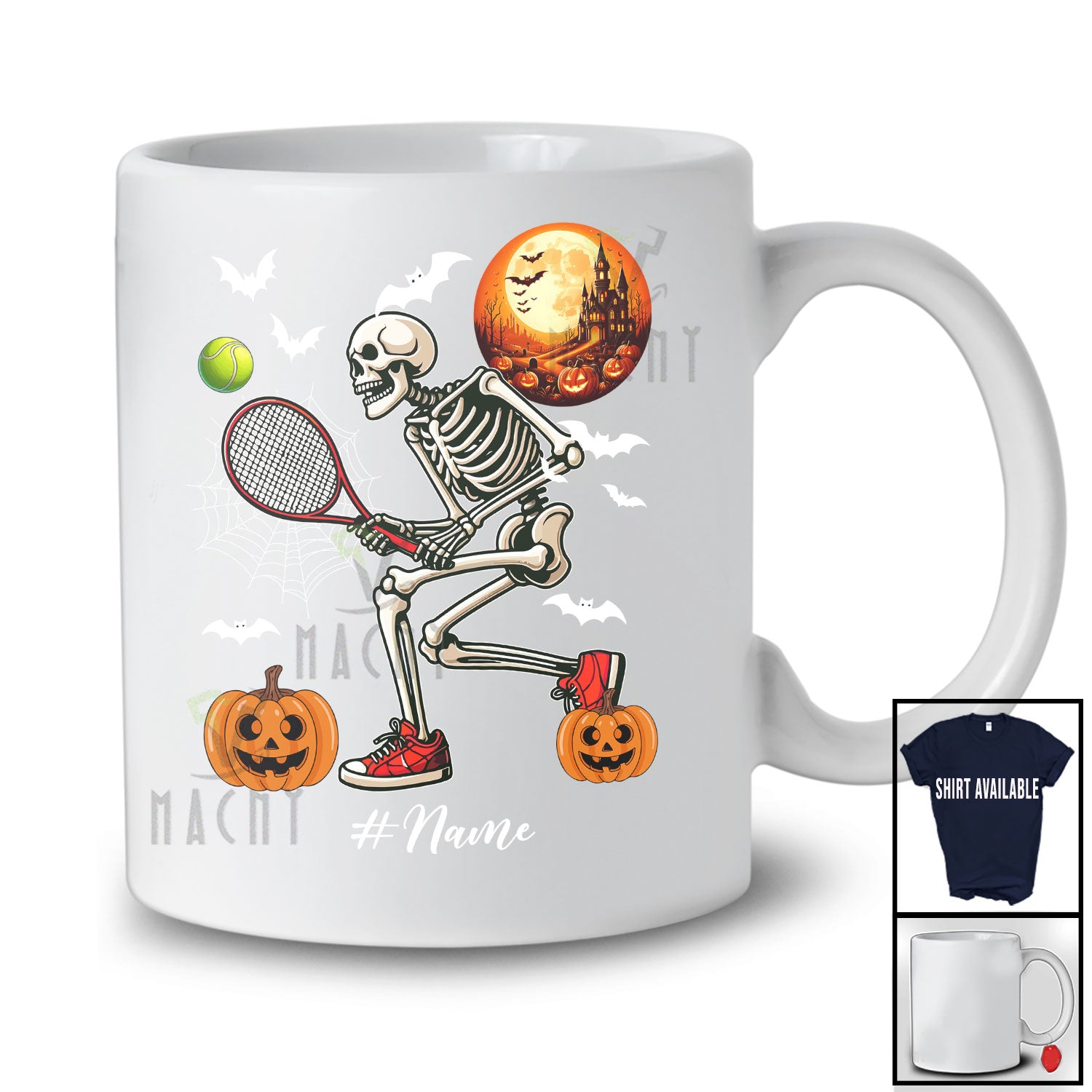 new MacnyStore - Personalized Skeleton Playing Tennis; Joyful Halloween Moon Custom Name Sport Player Team T-Shirt – Macnystore